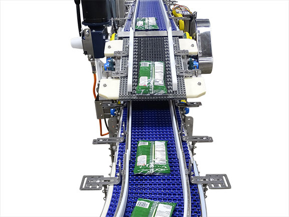 Nercon has created a line of mergers, merging conveyors and combining conveyors to move round or irregular-shaped products from multiple lanes to a single lane or a mass flow of products into a single organized stream. Nercon's mergers use clamps or stops to create a gap to allow products to combine into a single stream. Mergers are used more with irregular shaped products that will not combine on their own while combiners take like products that easily want to form a single stream and combine them into a single lane. When products need to move smoothly within a production line without damage or harm, Nercon's mergers and combiners offer the perfect solution.